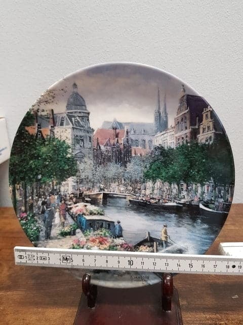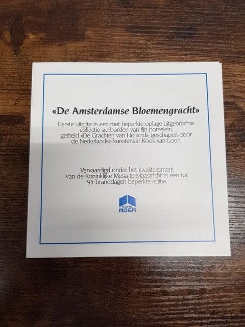 Bordje Amsterdamse Bloemengracht – Royal Mosa wandbordje – geschilderd door Koos van Loon.