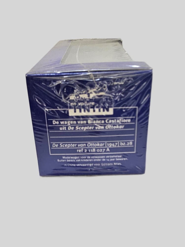 Deze prachtige blauwe modelauto is een replica van de wagen van Bianca Castafiore uit het Kuifje stripboek “De Scepter van Ottokar” uit 1947. Het is een gedetailleerde weergave van de auto die in het verhaal voorkomt, met oog voor elk klein detail. Het model is gemaakt door Hergé en Moulinsart in 2004 en vervaardigd in China voor Editions Atlas.