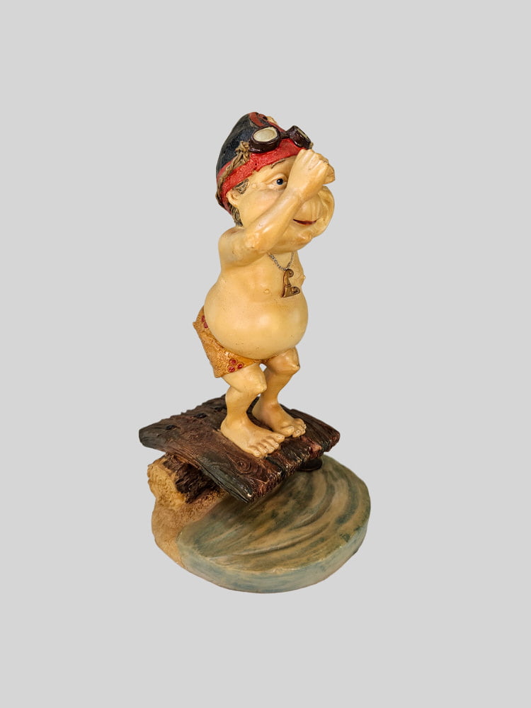 Deze schattige figuur op een duikplank is een prachtige toevoeging aan de Laaf-collectie. Met het jaartal 1999 en het serienummer N02934 is deze unieke Laaf een waar verzamelobject. De sprookjesfiguur staat klaar om in het water te springen, wat zorgt voor een speels en levendig tafereel.