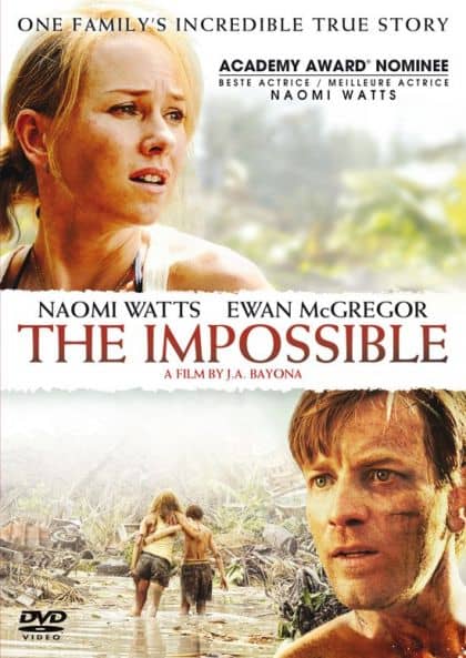 – Maria, Henry (Naomi Watts & Ewan McGregor) en hun drie zoons gaan in de winter op vakantie en zoeken het mooie weer op in Thailand. Maar op de morgen van 26 december, wanneer de familie rustig bij het zwembad zit, zien ze een grote zwarte vloedgolf hun kant op komen. Ze worden getroffen door een tsunami. Maria komt na een hevige klap weer boven water, maar weet zeker dat haar familie het niet gered heeft. Dan ziet ze haar oudste zoon Lucas verderop in het water… – Speelduur 114 min.