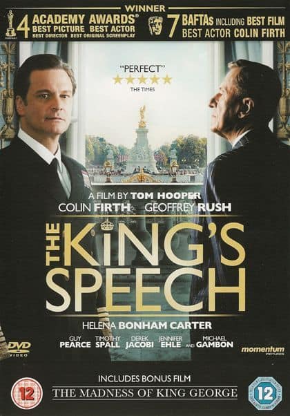 – Nadat zijn broer aftreedt wordt George nogal ongewild de nieuwe Koning van Engeland en gaat door het leven als George VI. Helaas stottert hij, wat niet echt Koninklijk overkomt. Hiervoor schakelt hij de hulp in van de onorthodoxe spraaktherapeut Lionel Logue wat resulteert in een reeks ongewone technieken en een bijzondere vriendschap. – Speelduur 118 min.